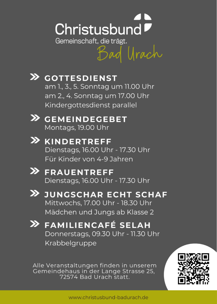 Christusbund Bad Urach Christusbund Bad Urach Termine, Veranstaltungen und Neuigkeiten Veranstaltungen & Termine Alle Termine anzeigen